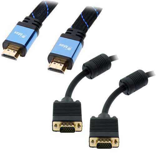 GTMax 15FT Gold Plated SVGA Monitor Cable + 6FT HDMI 1.4 Cable (Blue Nylon)
